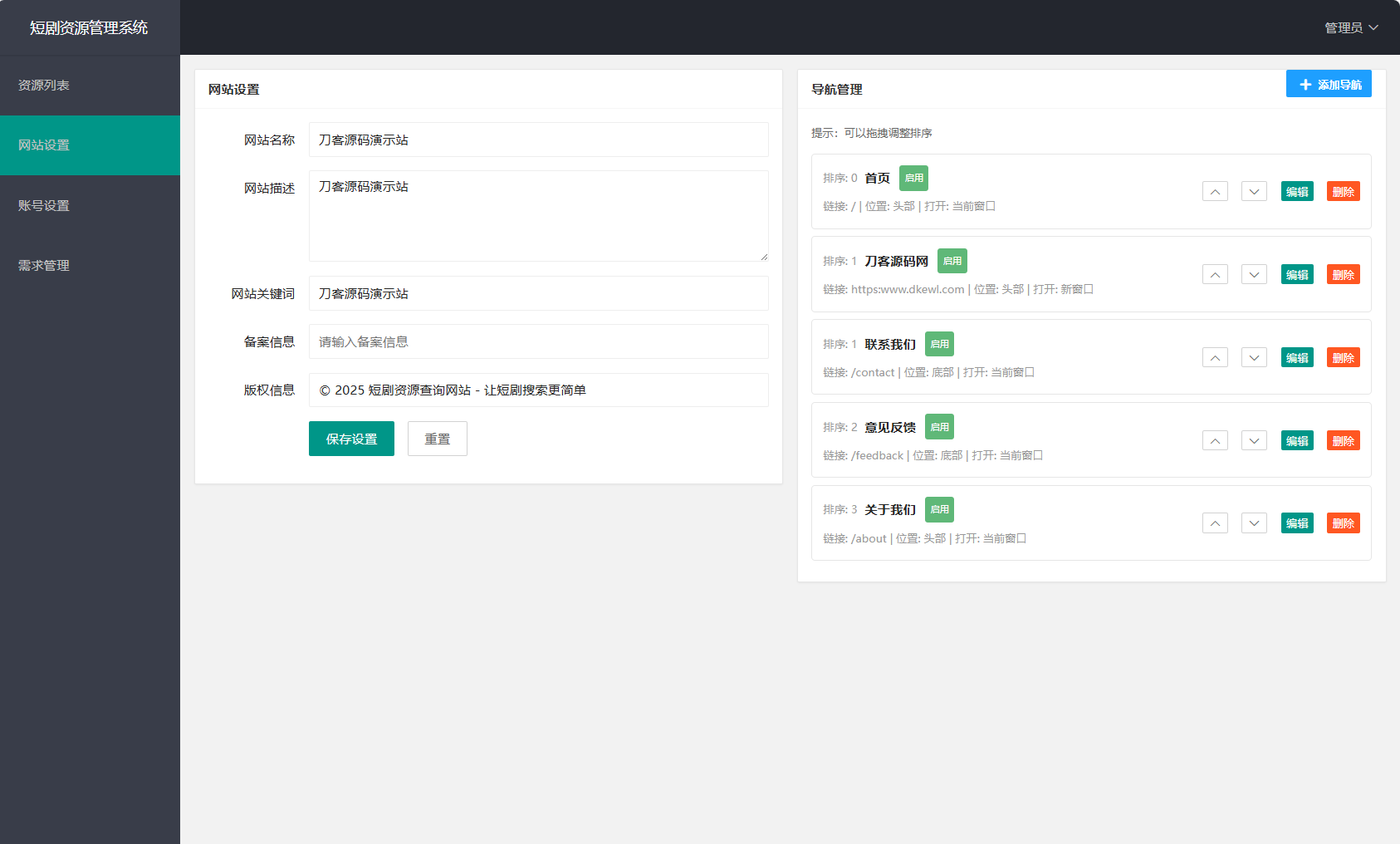 网盘短剧资源转存项目源码 支持夸克 带后台 附教程192661171761个月前更新关注私信046862564网盘短剧资源转存项目源码 支持夸克 带后台 附教程此内容为付费资源,请付费后查看100积分个人会员免费至尊会员免费登录购买付费资源 简介: 网盘短剧资源转存项目源码 支持夸克 带后台 附教程 安装教程: 测试环境:Nginx + PHP7.4 + MySQL5.7 数据库信息配置文件:.env 网站运行目录设置为:public 图片: 举报该内容© 版权声明文章版权归作者所有,未经允许请勿转载。THE END积分商城 喜欢就支持一下吧点赞2564 分享QQ空间微博QQ好友海报分享复制链接收藏